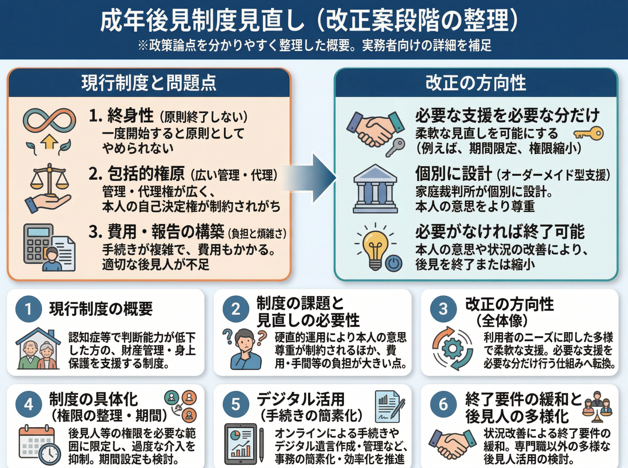 ※本資料は、現時点の法制審議会資料および報道に基づく「改正案・検討状況」の整理です。今後の国会審議等により内容が変更される可能性があります。断定的な制度変更としてではなく、方向性の理解資料としてご参照ください。